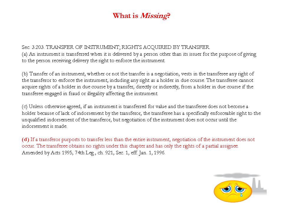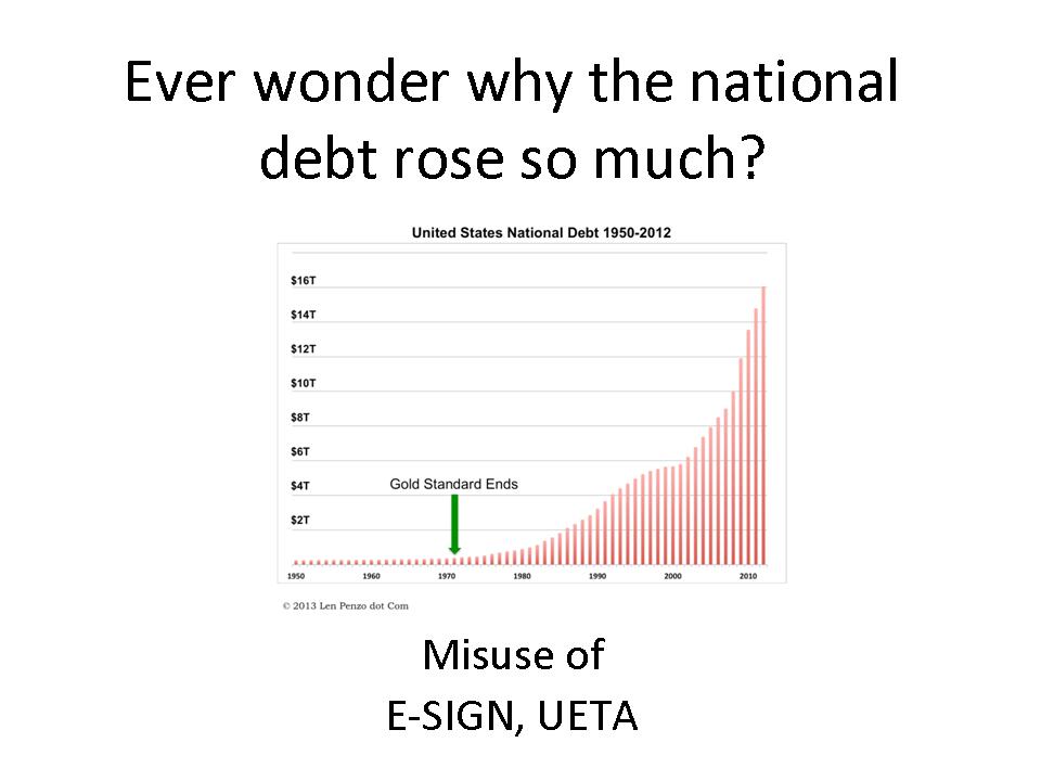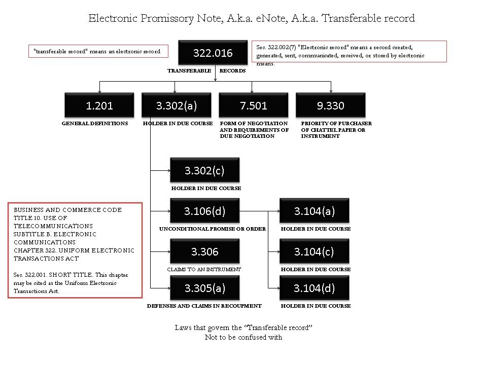 The following slides are a breakdown of the Uniform Electronic Transaction Acts, as published by Texas Legislators. It is ironic that this electronic transfer stuff originally was intended as an ideal way for insurance companies to utilize electronic contracts, and those contracts could be enforced by law. Some how, a lot of folks were mislead to believe it was a law for MERS members to legally conduct real estate transactions electronically? MERS members probably could have accomplished this process, but they took shortcuts, and bypassed vital laws to keep the real property mortgages "secured", thus rendering them unsecured. A debacle for all.