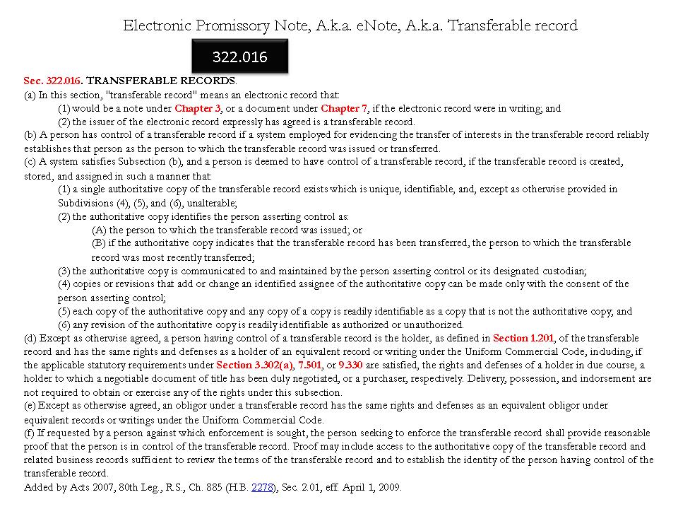 The following slides are a breakdown of the Uniform Electronic Transaction Acts, as published by Texas Legislators. It is ironic that this electronic transfer stuff originally was intended as an ideal way for insurance companies to utilize electronic contracts, and those contracts could be enforced by law. Some how, a lot of folks were mislead to believe it was a law for MERS members to legally conduct real estate transactions electronically? MERS members probably could have accomplished this process, but they took shortcuts, and bypassed vital laws to keep the real property mortgages "secured", thus rendering them unsecured. A debacle for all.